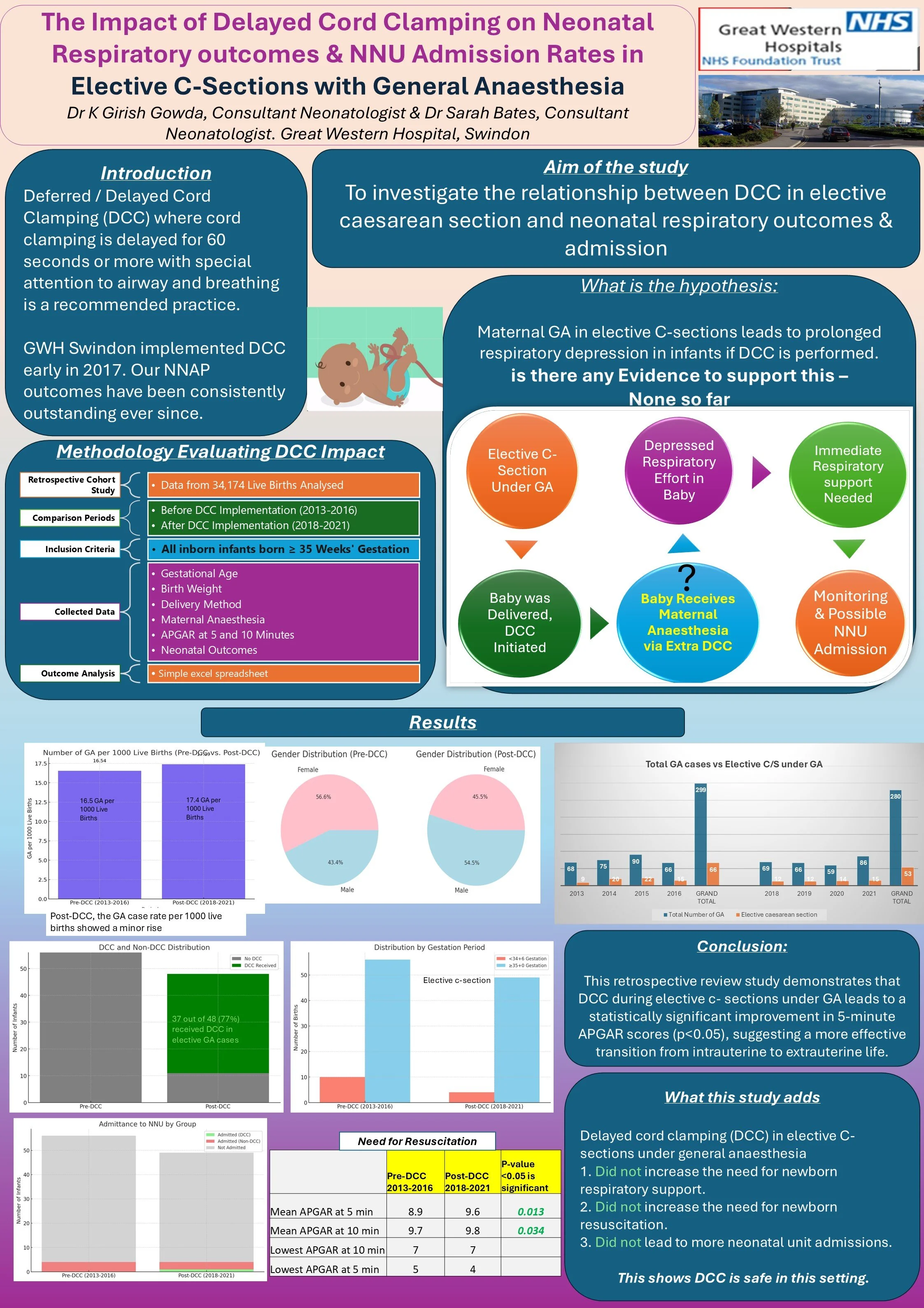 The Impact of Delayed Cord Clamping on Neonatal Respiratory Outcomes and NNU Admission Rates in Elective C-Sections with General Anaesthesia